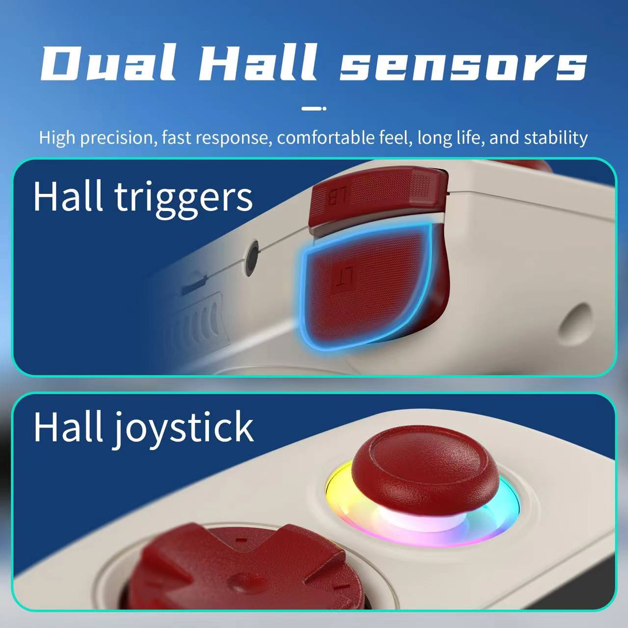 16 million color RGB joystick lighting, support constant light, breath, rainbow, marquee, chasing, gaming and other light effects, support customize the color and adjust the brightness.