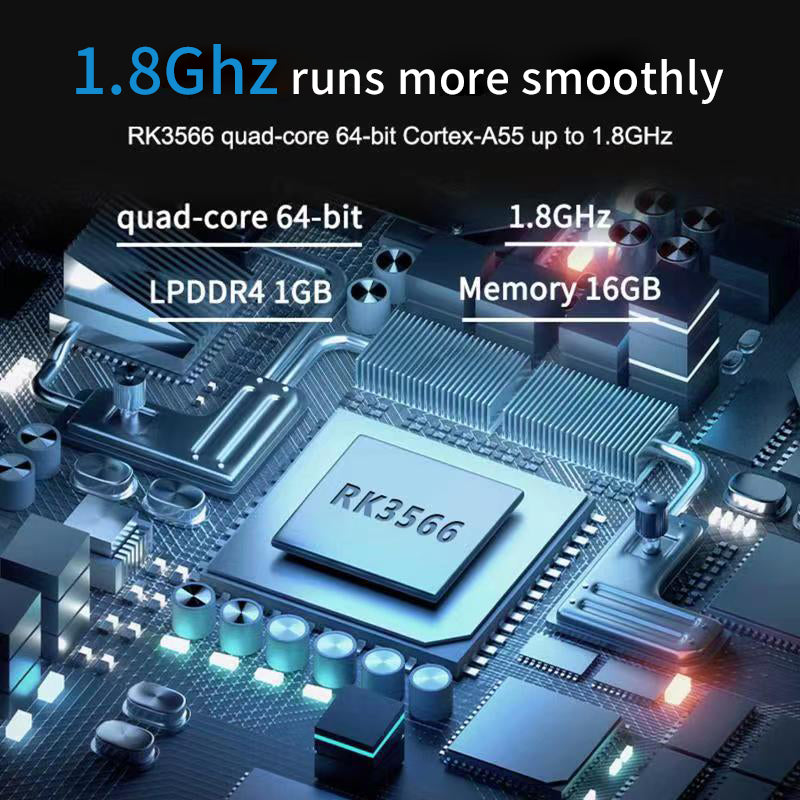 -- CPU:Quad-Core 64 bit Cortex-A55, Main frequency up to 1.8GHz