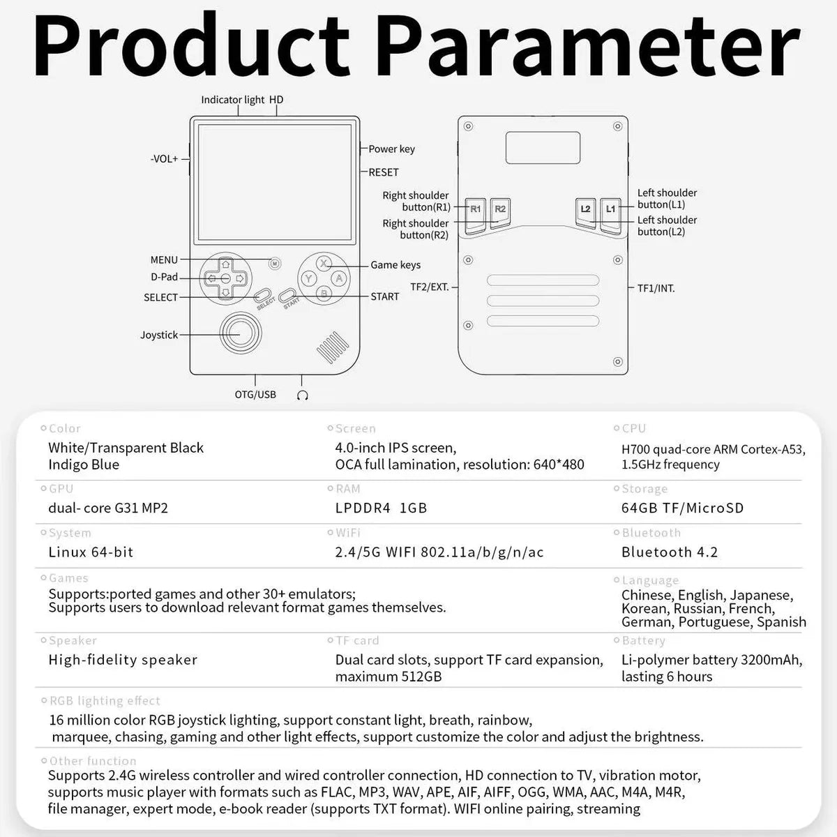 Supports 2.4G wireless controller and wired controller connection, HD connection to TV, vibration motor, WIFI online pairing, streaming