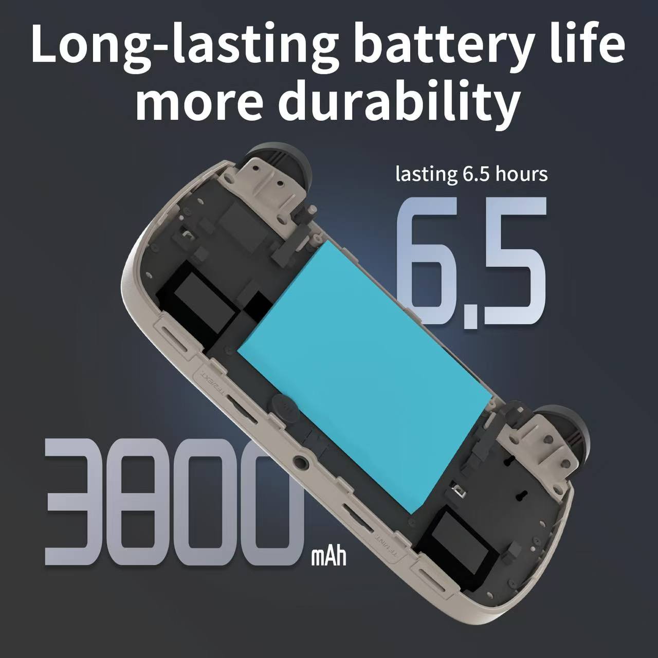 Li-polymer battery 3800mAh, lasting 6.5 hours